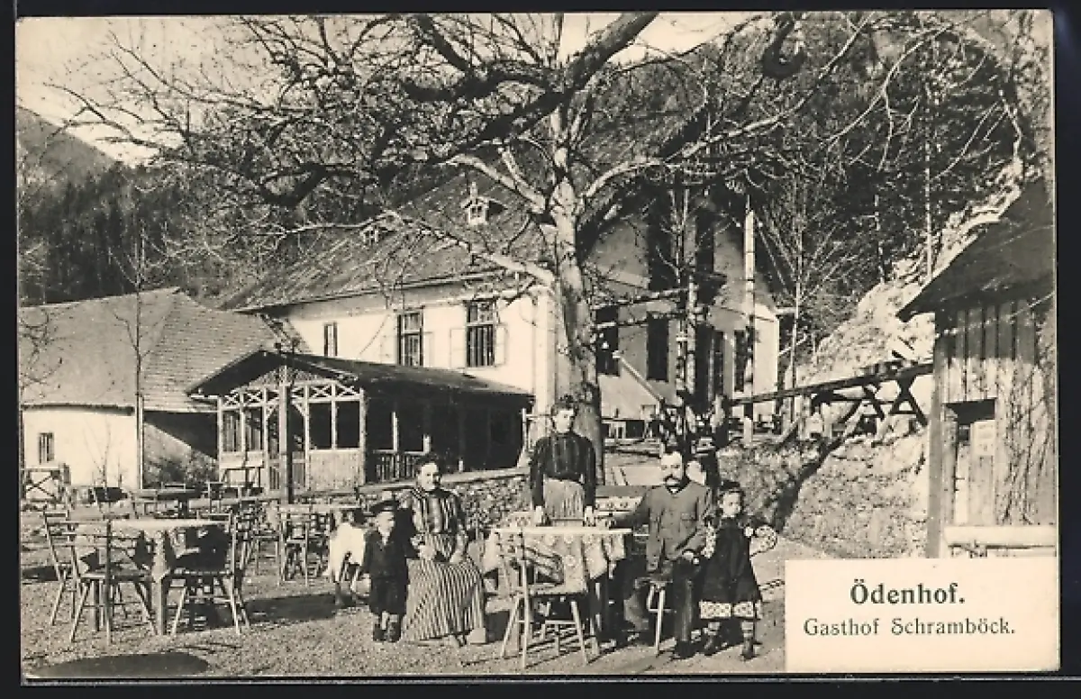 AK Ödenhof, Gasthof Schramböck mit Garten