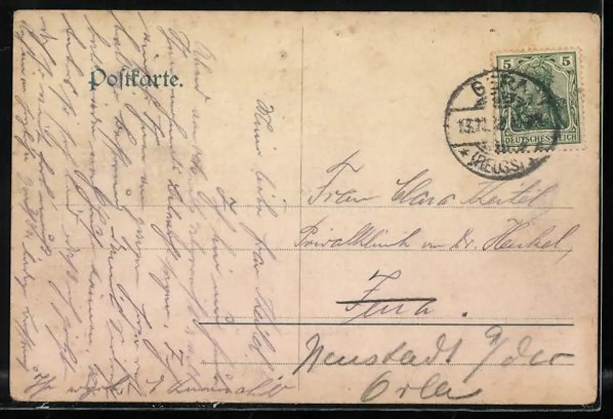 alte Ansichtskarte, gelaufen, Pinlöcher oben Mitte, Stempelspur, guter Zustand