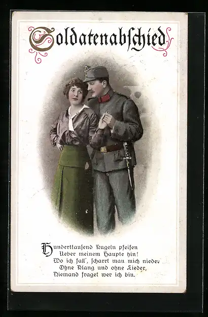 AK Österreichischer Soldat in Uniform mit seiner Frau, Soldatenabschied