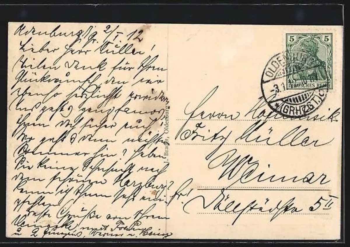 alte Ansichtskarte, gelaufen 1912, guter Zustand