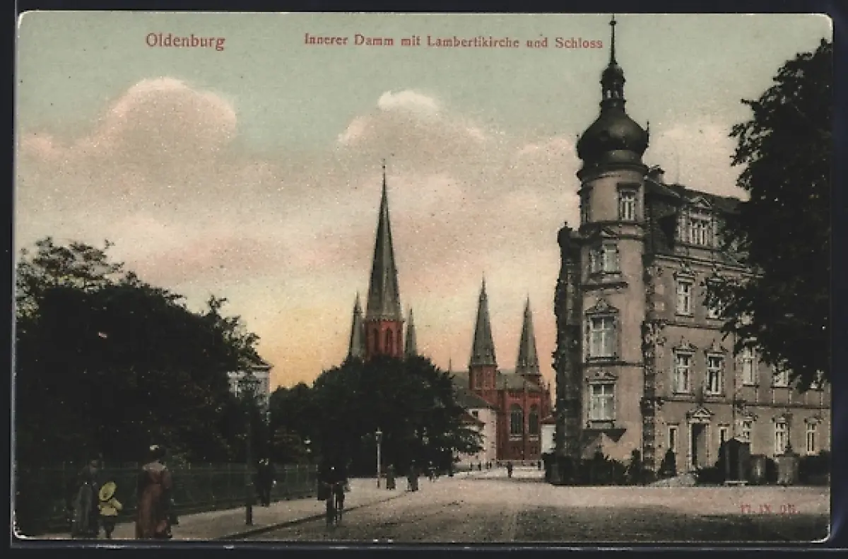 AK Oldenburg, Innerer Damm, Lambertikirche, Schloss