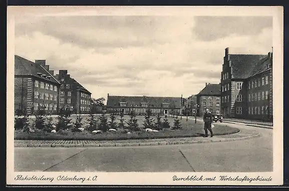 AK Oldenburg / O., Flakabteilung, Durchblick mit Wirtschaftsgebäude