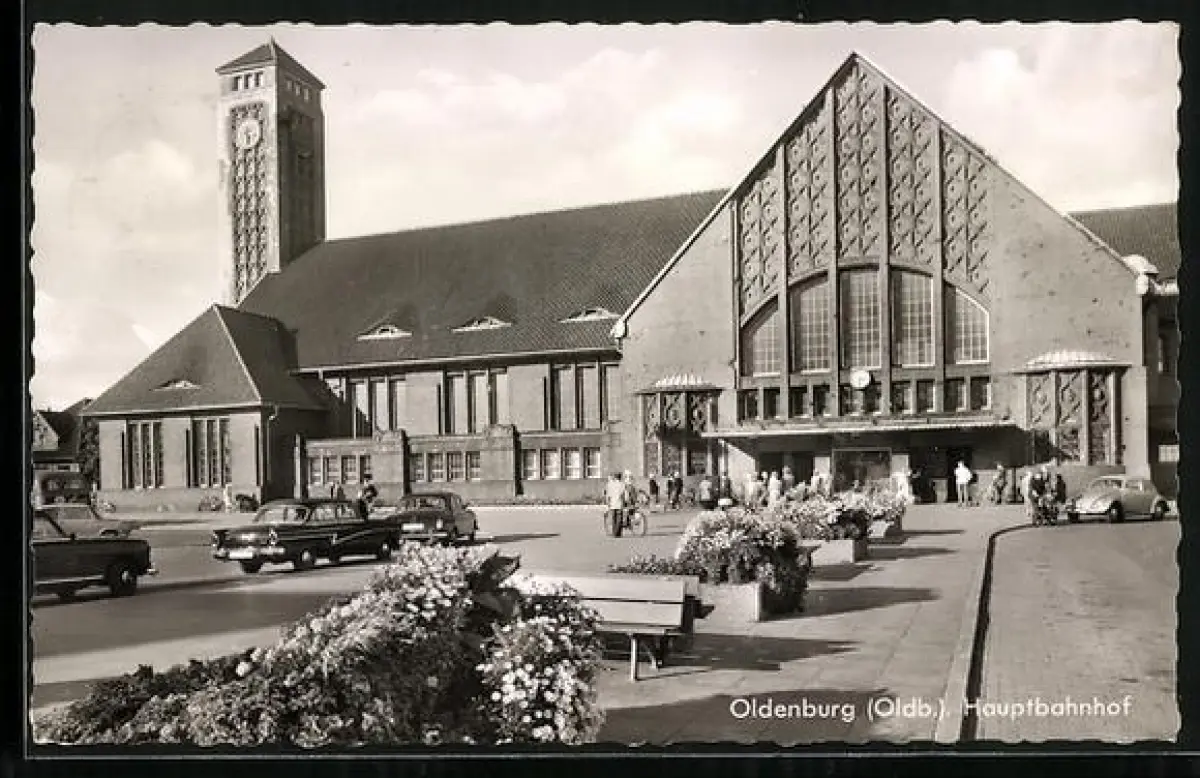 AK Oldenburg /Oldb., Frontalansicht des Bahnhofs