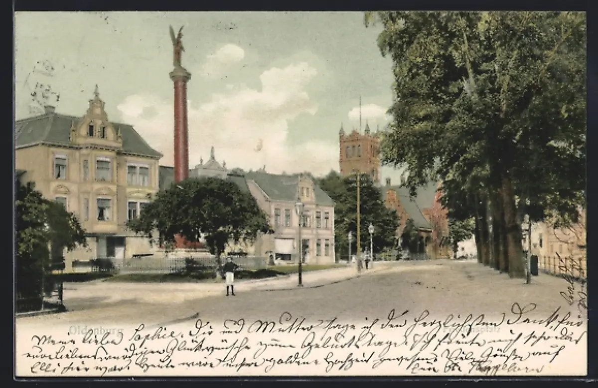 AK Oldenburg / Oldenburg, Siegesdenkmal, Strassenpartie