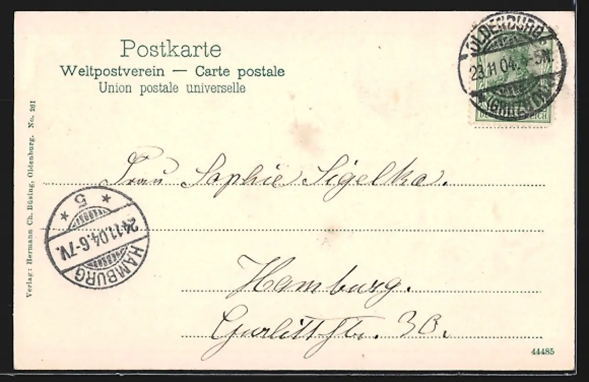 alte Ansichtskarte, gelaufen 1904, Stempelspur, guter Zustand