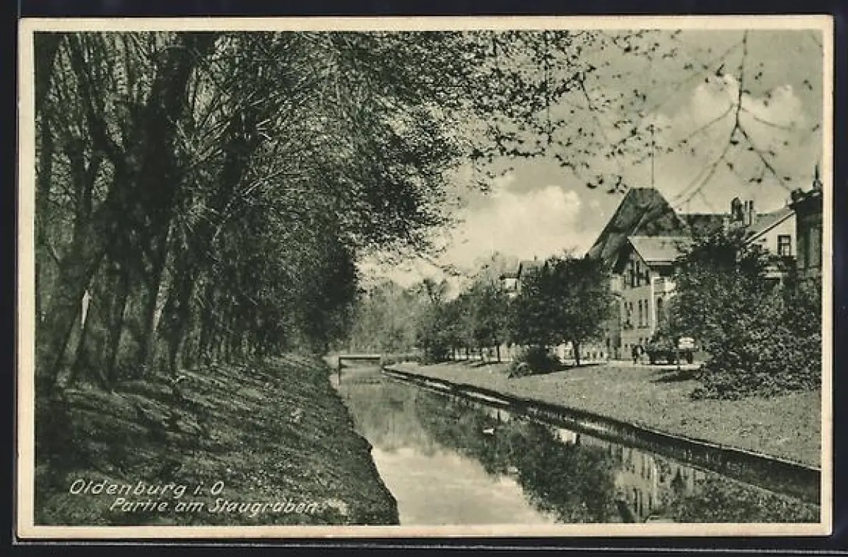 AK Oldenburg i. O., Staugrabenstrasse mit Partie am Staugraben