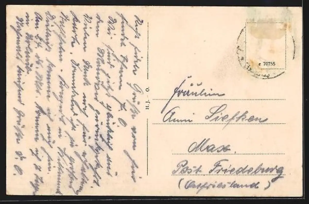alte Ansichtskarte, gelaufen, Briefmarke entfernt, guter Zustand