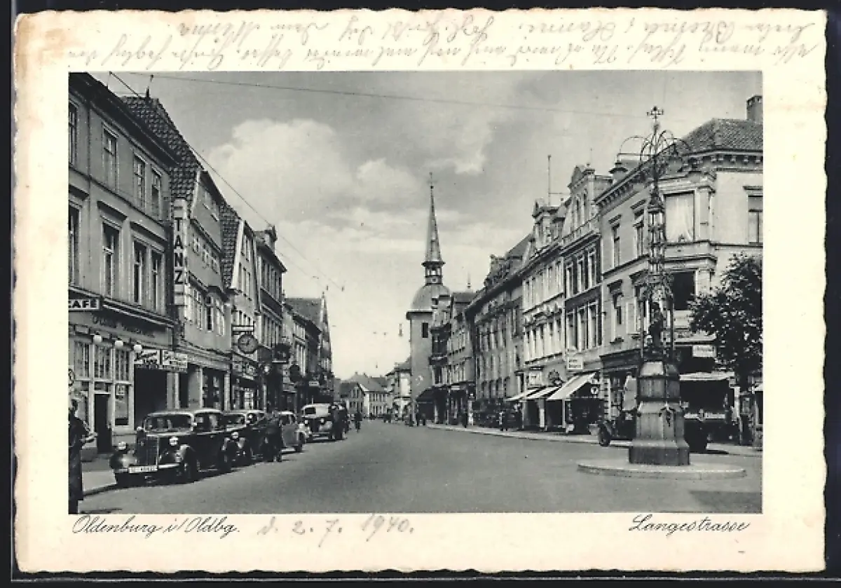 AK Oldenburg i. Oldbg., Langestrasse mit Geschäften und Autos