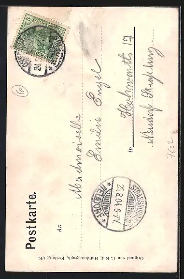 alte Ansichtskarte, gelaufen 1904, Eckknick unten re., Stempelspur, guter Zustand