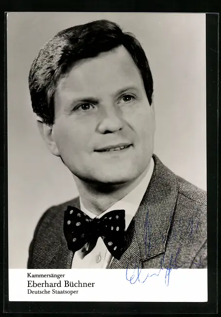 AK Opernsänger Eberhard Büchner im Anzug mit Fliege, mit original Autograph