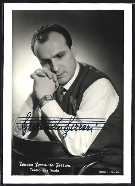 AK Opernsänger Ferrando Ferrari im weissen Hemd und Pullunder, mit original Autograph