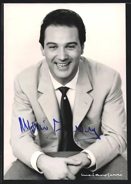 AK Opernsänger Mario Ferrara im hellen Anzug am Lachen, mit original Autograph
