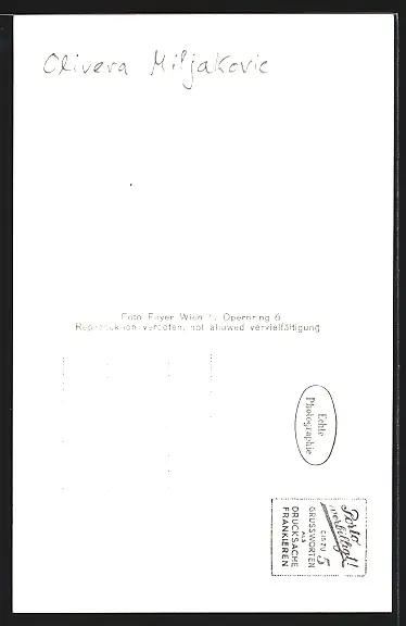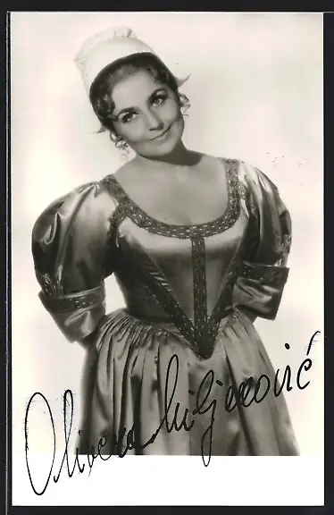 AK Opernsängerin Olivera Miljakovic im Kostüm mit Hut, mit original Autograph