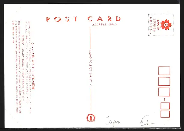 AK Osaka, Japan World Exposition 1970, Quebec, Canada