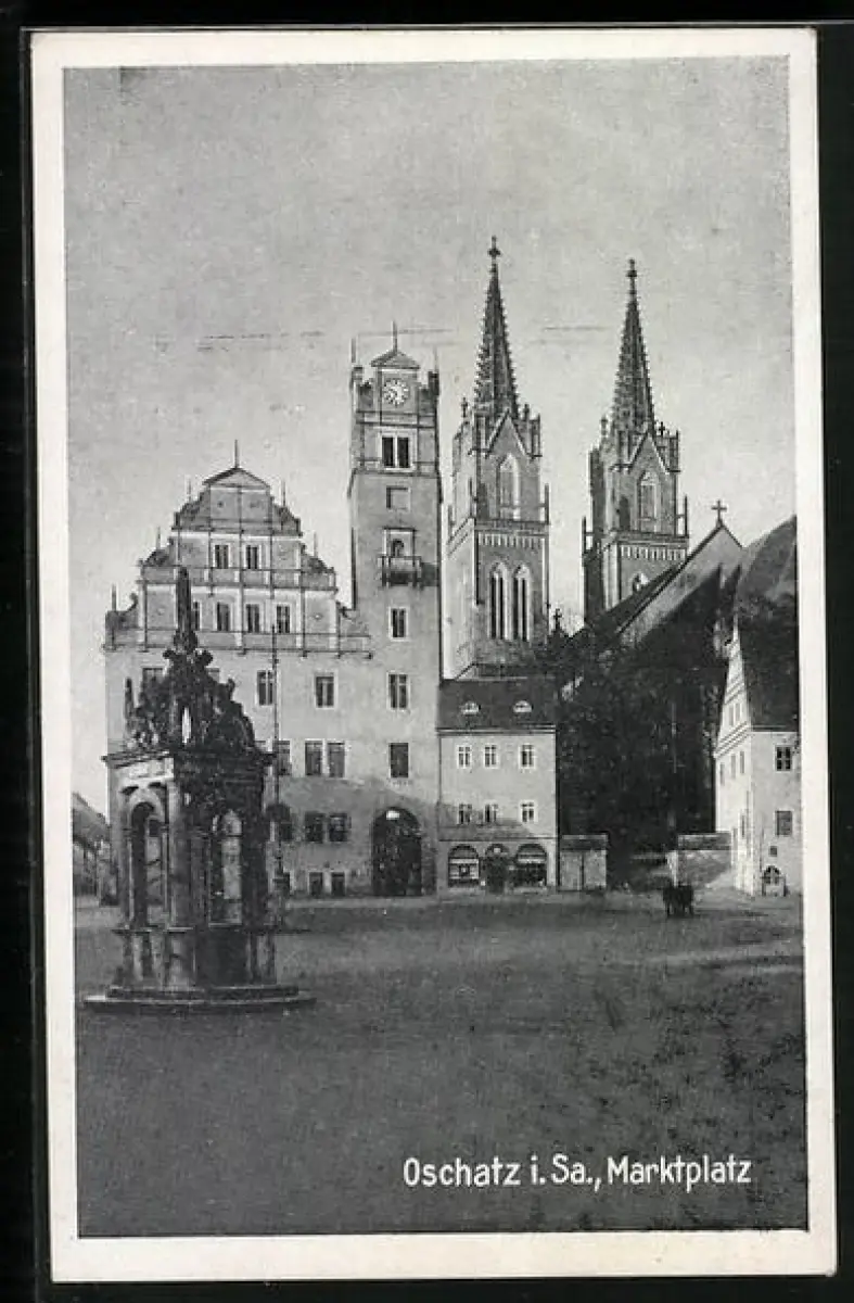 AK Oschatz i. Sa, Partie auf dem Marktplatz