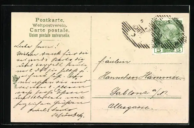 alte Ansichtskarte, gelaufen, Stempelspur, guter Zustand