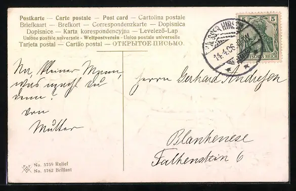 alte Ansichtskarte, gelaufen 1906, guter Zustand