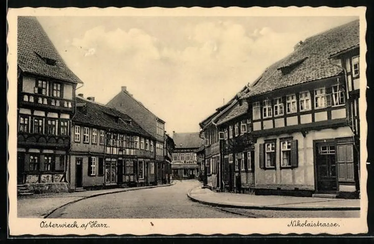 AK Osterwieck, alte Fachwerkhäuser in der Nicolaistrasse