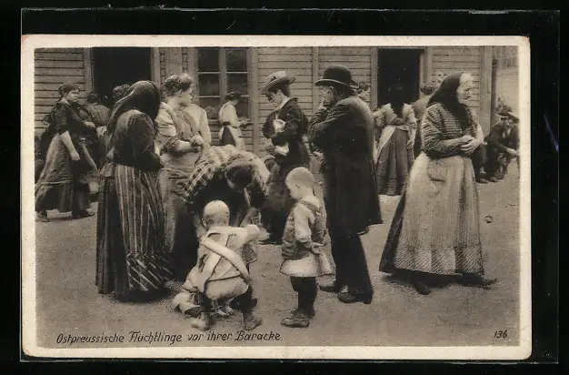 AK Ostpreussische Flüchtlinge vor ihrer Baracke