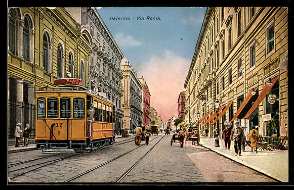 AK Palermo, Via Roma, Strassenbahn