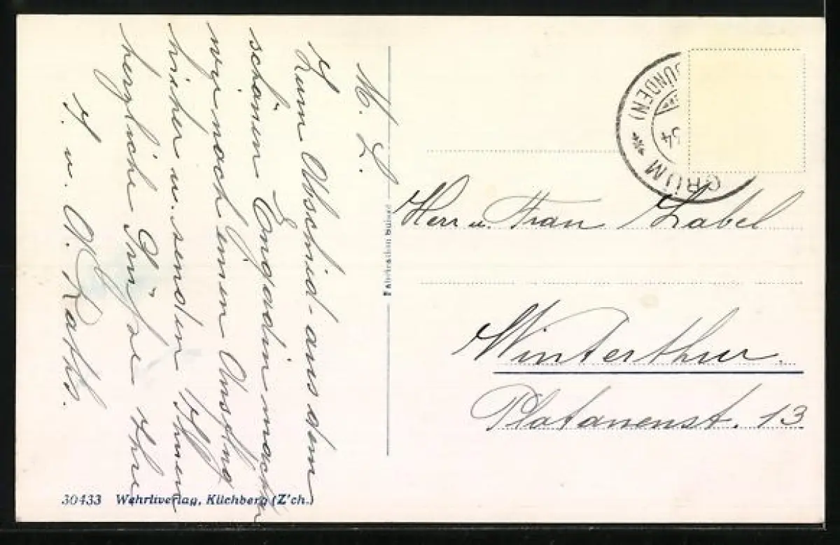 alte Ansichtskarte, gelaufen, Briefmarke entfernt, guter Zustand