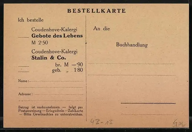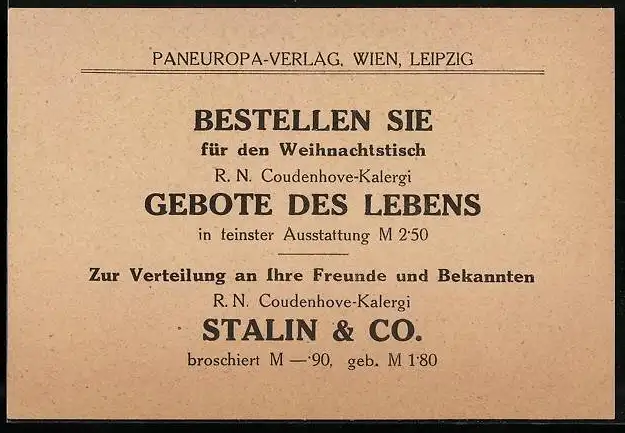 AK Paneuropa-Verlag Wien und Leipzig, R. N. Coudenhove-Kalergi, Gebote des Lebens