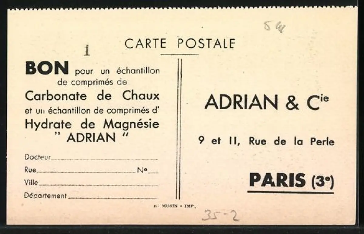 AK Paris, 9 et 11, Rue de la Perle, Comprimes de Adrian & Cie