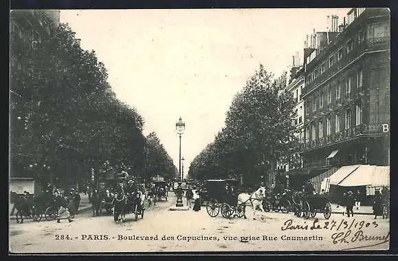 AK Paris, Boulevard des Capucines, vue prise Rue Caumartin