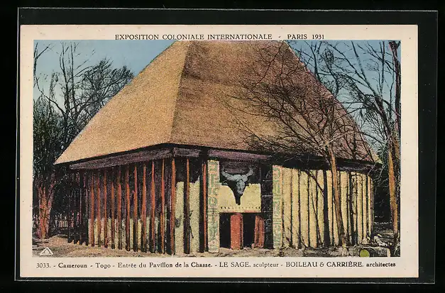 AK Paris, Exposition coloniale internationale 1931, Cameroun-Togo, Entrée du Pavillon de la Chasse