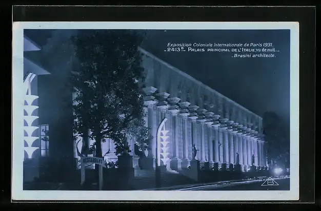AK Paris, Exposition coloniale internationale 1931, Palais Principal de l`Italie, vu de nuit