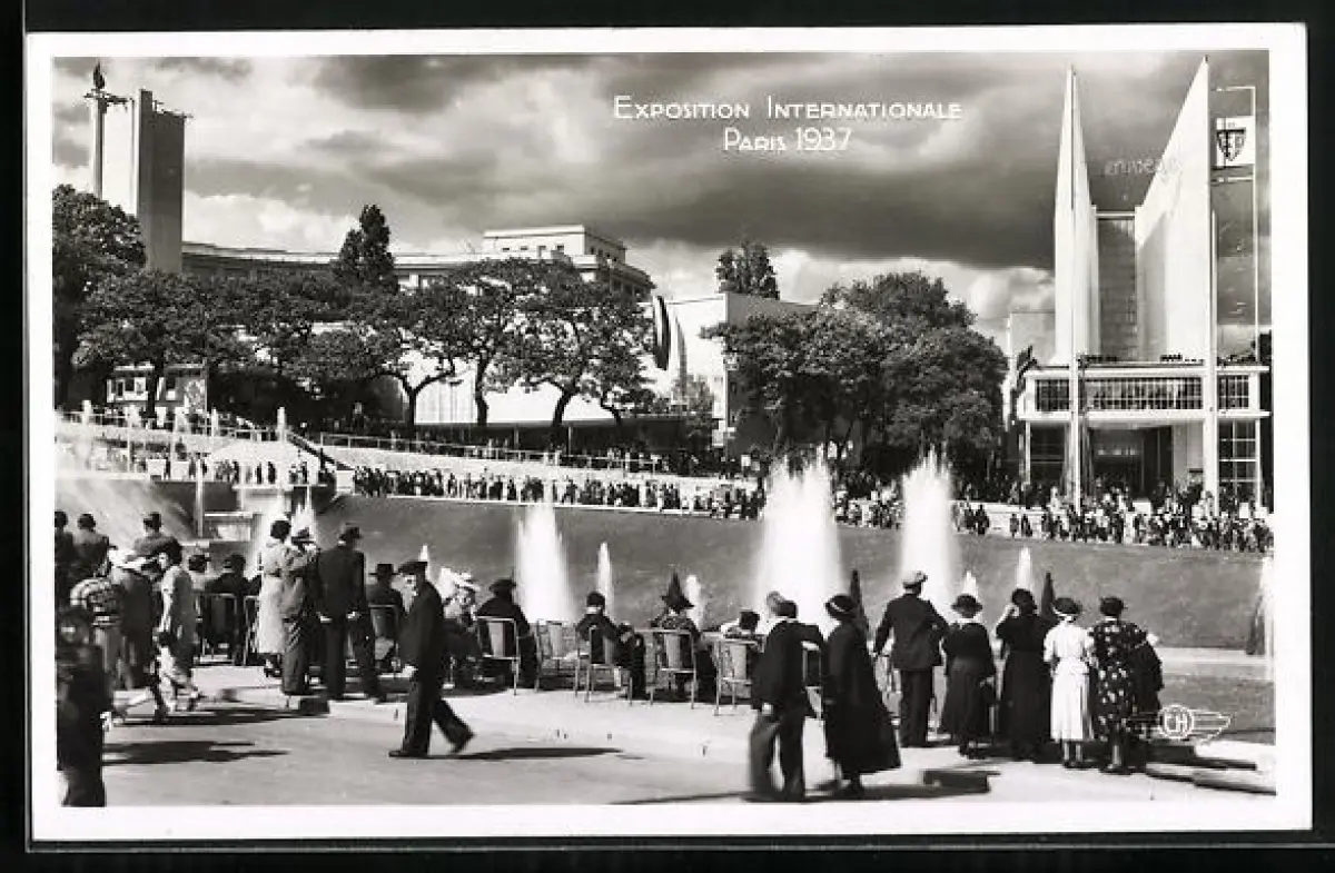 AK Paris, Exposition internationale 1937, Jardins et Bassins du Trocadero au faond, les Pavillon des Pays-Bas