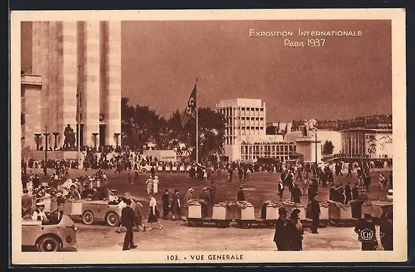 AK Paris, Exposition internationale 1937, Vue Générale, und Besucherbahn