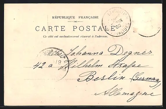 gelaufen 1900, Briefmarke entfernt, rückseitig Oberflächenschaden, guter Zustand