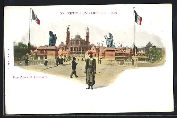 AK Paris, Exposition universelle de 1900, Pont de Iena et Trocadéro