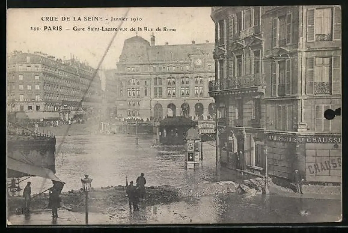 AK Paris, Vue de la Rue de Rome, Hochwasser 1910