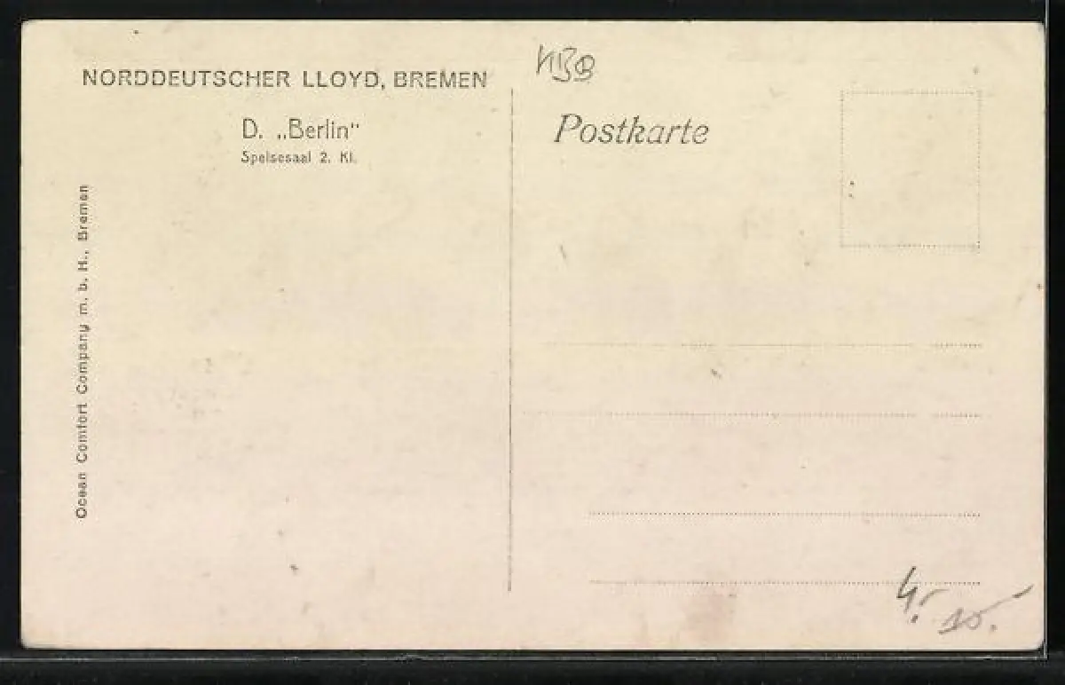 AK Passagierschiff Berlin, Speisesaal 2. Klasse