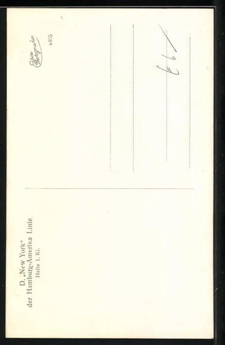 AK Passagierschiff New York, Hamburg-Amerika Linie, Blick in die Halle 1. Klasse