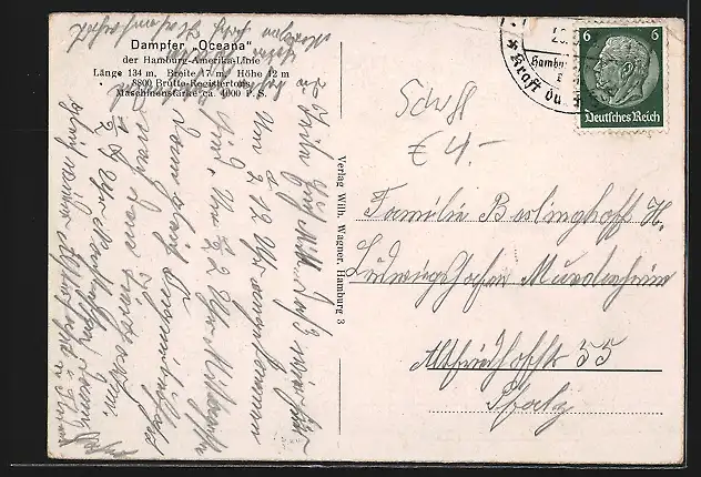 AK Passagierschiff Oceana der Hamburg-Amerika-Linie vor der Küste