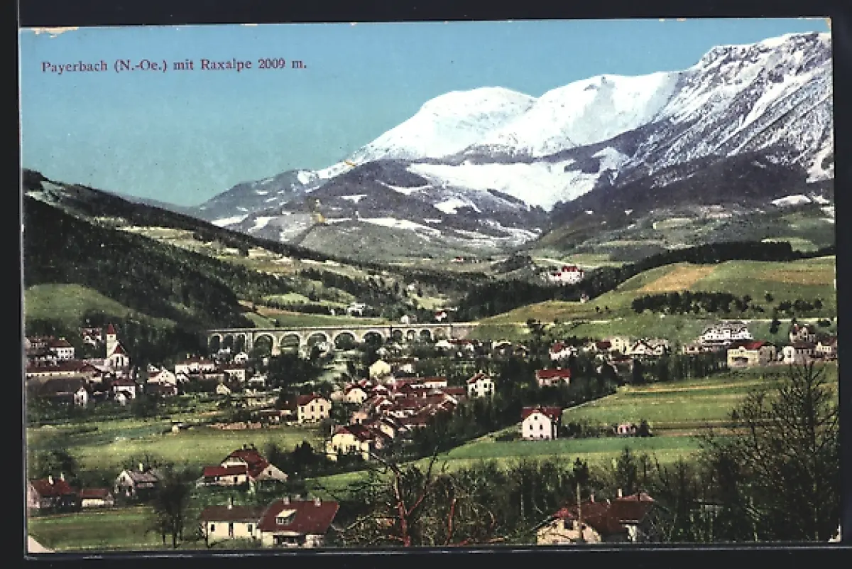 AK Payerbach, Gesamtansicht mit der Raxalpe