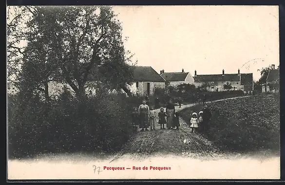 AK Pecqueux, Rue de Pecqueux avec habitants en promenade