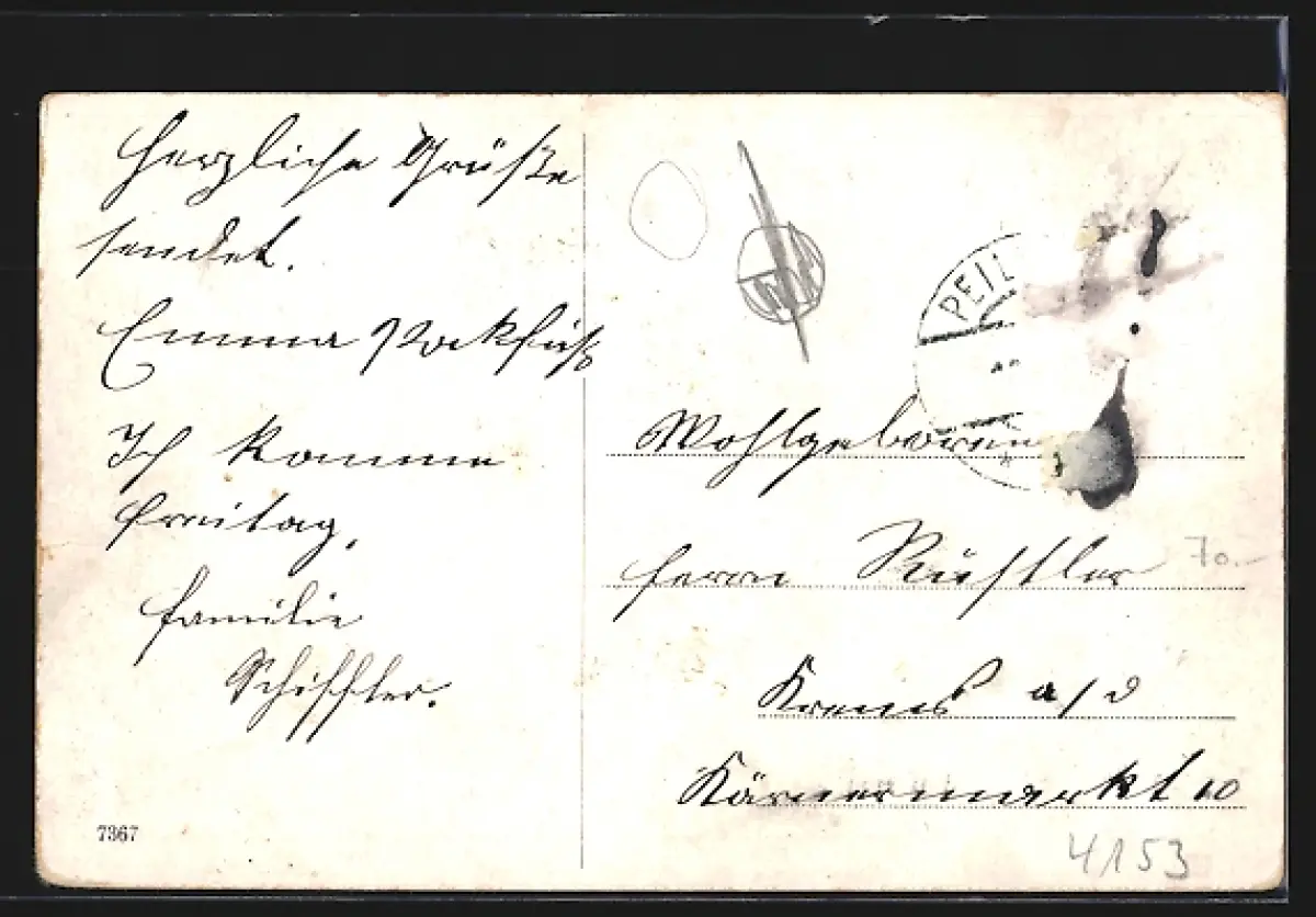alte Ansichtskarte, gelaufen, Briefmarke entfernt, guter Zustand