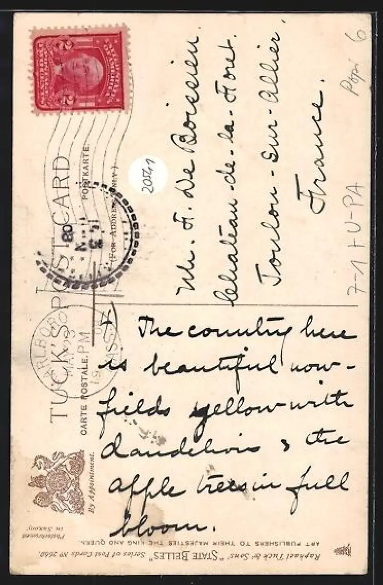 alte Ansichtskarte, gelaufen, rückseitig Klebe- und Papierreste, guter Zustand