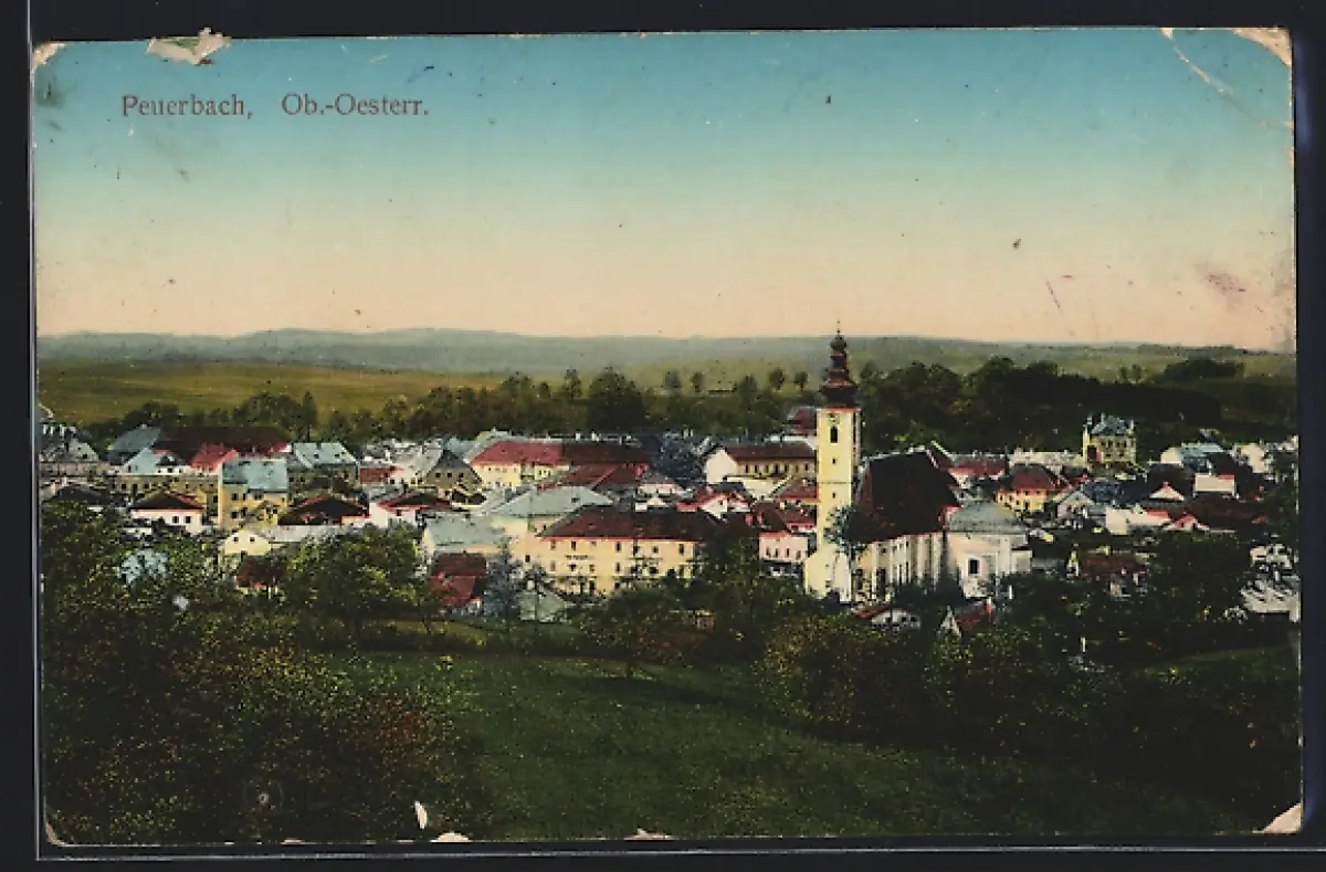 AK Peuerbach /Ob.-Oesterr., Teilansicht mit Kirche