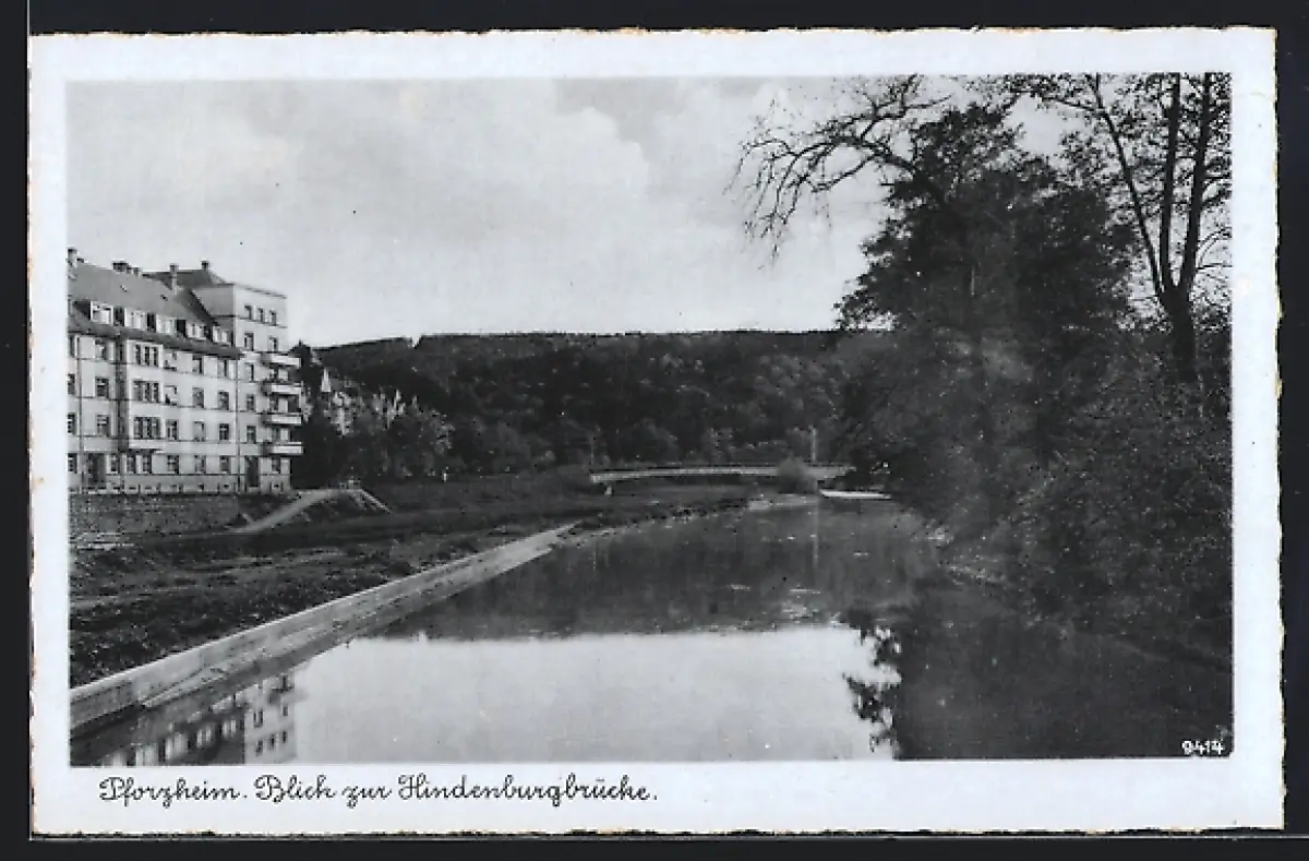 AK Pforzheim, Blick zur Hindenburgbrücke
