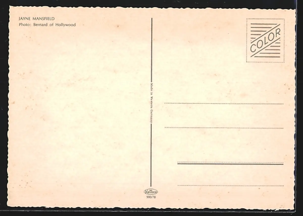 AK Pin-Up-Girl Jayne Mansfield auf einem Bett liegend