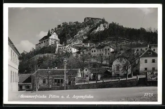 AK Pitten a. d. Aspangbahn, Geschäft v. Karl Scheriau, Ortsansicht