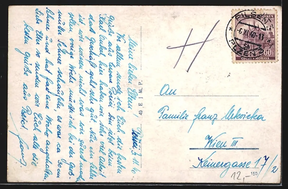 alte Ansichtskarte, gelaufen 1940, Eckknick rechts unten, guter Zustand