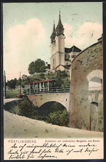 AK Pöstlingberg, Endstation der elektrischen Bergbahn mit Kirche