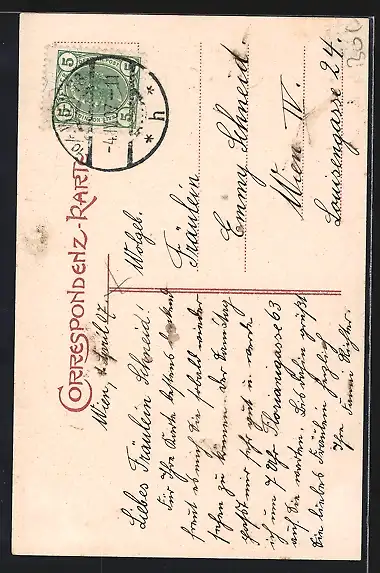 alte Ansichtskarte, gelaufen 1907, Stempelspur, guter Zustand
