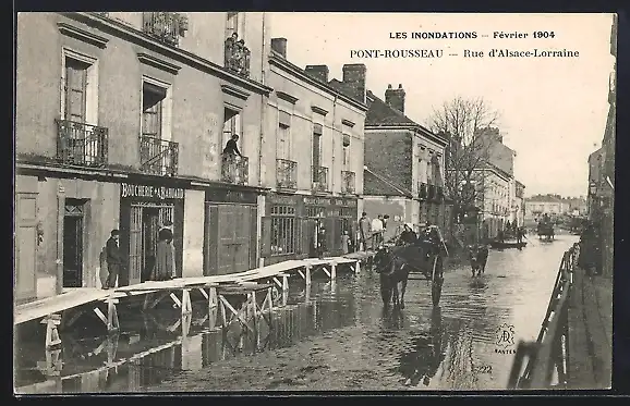 AK Pont-Rousseau, Les Inondations 1904, Rue d`Alsace-Lorraine